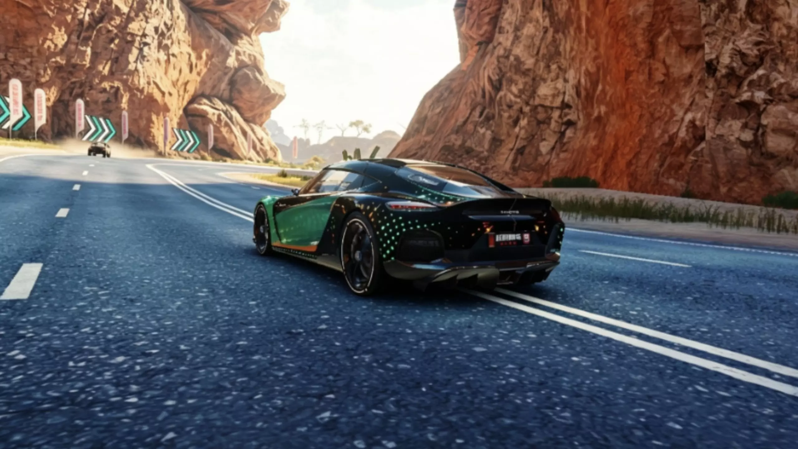 这是手机游戏《狂野飙车9》的跑图内容展示,呈现了驾驶Devel Sixteen赛车在蜿蜒之路赛道的精彩跑图过程,赛车可实现高速行驶、漂移等操作,画面刺激,展现了《狂野飙车9》的竞速魅力。