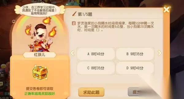 梦幻西游手游三界谜题活动答案大全: 1、梦灵珑家的小狗,每隔五分钟喝一次水,第一次喝水的时间是8点,第20次喝水的时间是多少? 答案:9时35分 2、剑侠客有4块80厘米的木板,现在要连起来钉成一块,中间重叠10厘米,则钉完后的木板长多少? 答案:290 3、某帮派有30名梦幻玩家,龙�m夺宝有22名玩家.秘境降妖有25名得优秀,绿烟如梦有20名通过。这三门副本全部通过的玩家至少有()名。 答案:7
