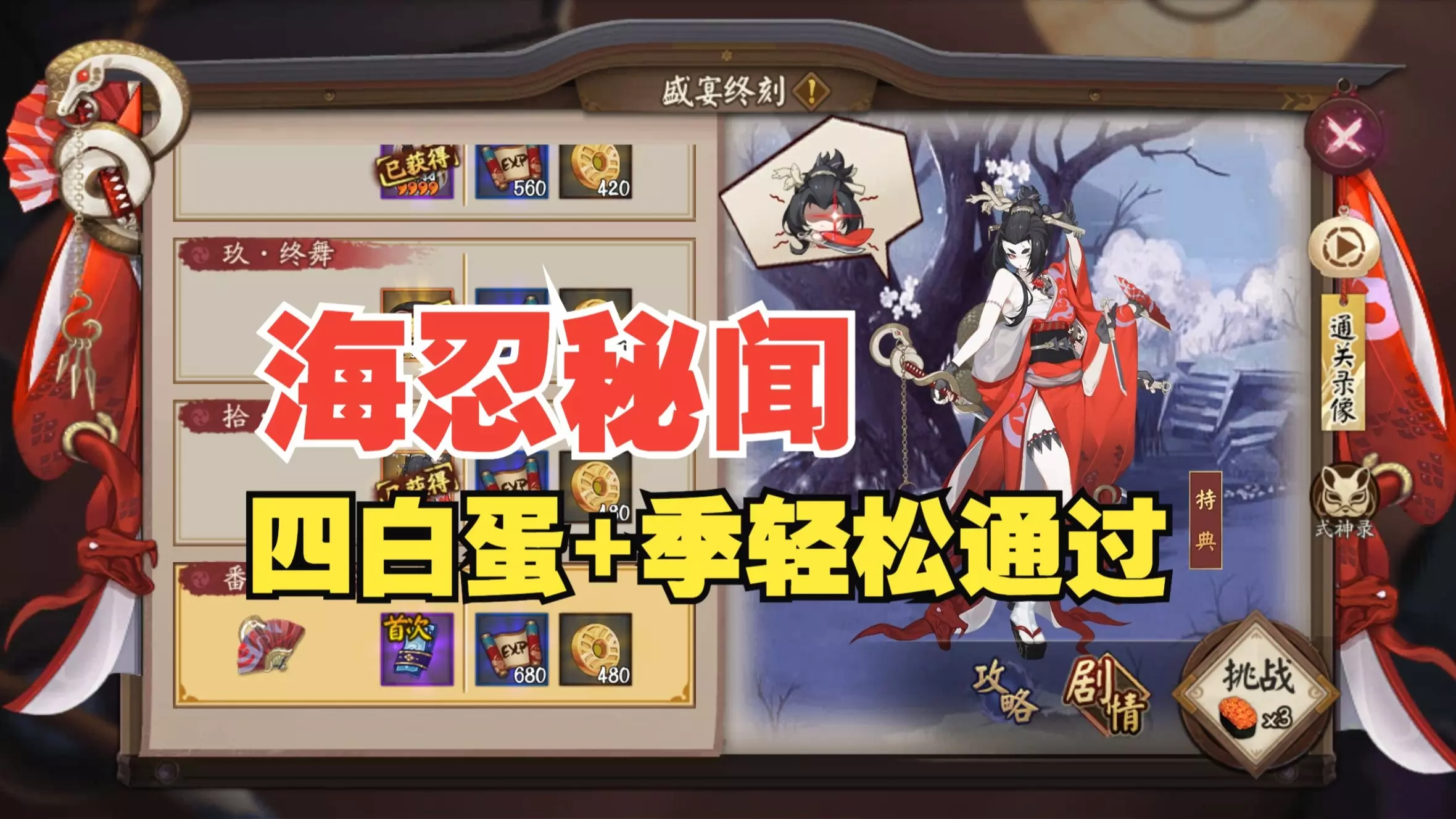 简介真牛(看到发弹幕,我祝您全家幸福) 白蛋的用意,这里的非常有必要说一下:白蛋仅仅是最恶劣没有任何式神又想通关秘闻的情况,如果你有其他式神可以上高生命式神替换…