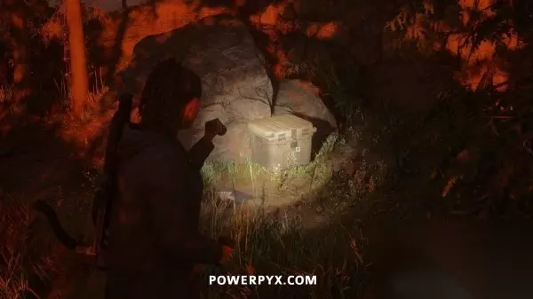 藏匿物16(护林员站藏匿物钥匙) 前往护林员站外面的烟囱,旁边的地上可以找到钥匙,拿到钥匙后前往护林员站西边山上即可打开藏匿物。