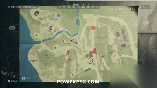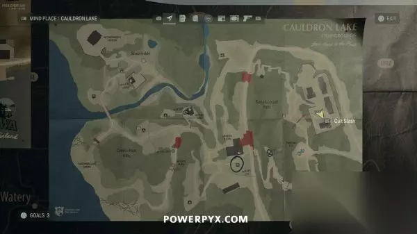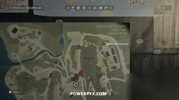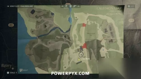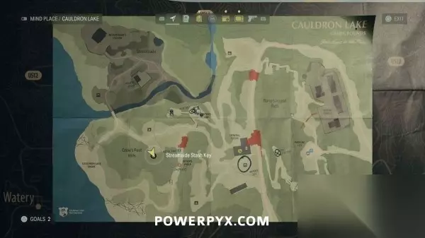 藏匿物21(湖边小屋藏匿物钥匙) 前往巨釜湖。使用切割器进入出租小木屋区域,穿过小屋到达北边区域,往北走可以找到一些写有数字的树,走到数字2的树后面,地上可以找到钥匙。拿到钥匙后返回1号木屋(最南边的木屋)即可开启藏匿物。
