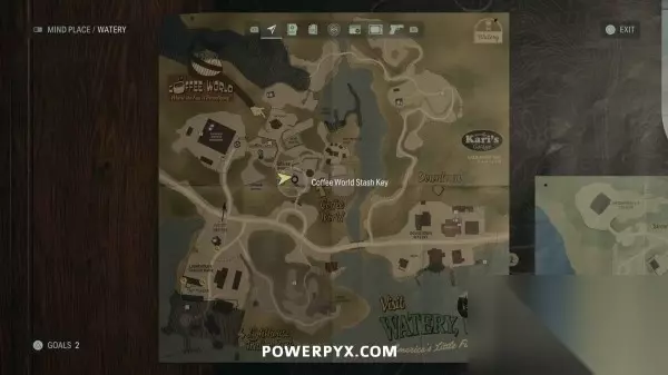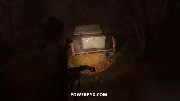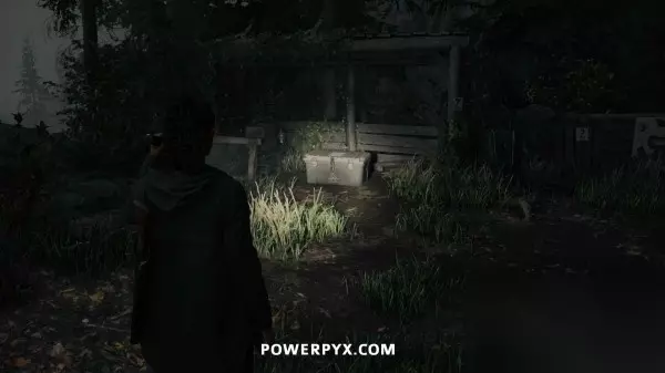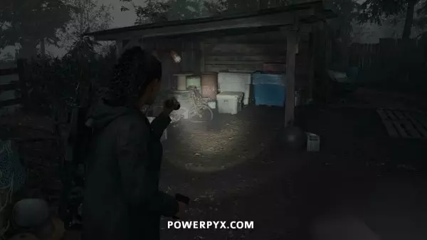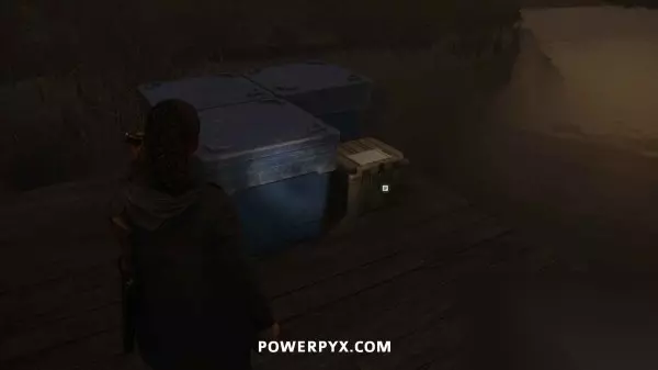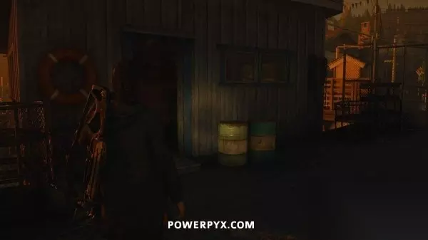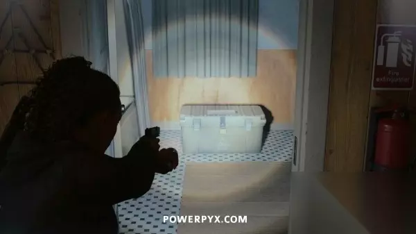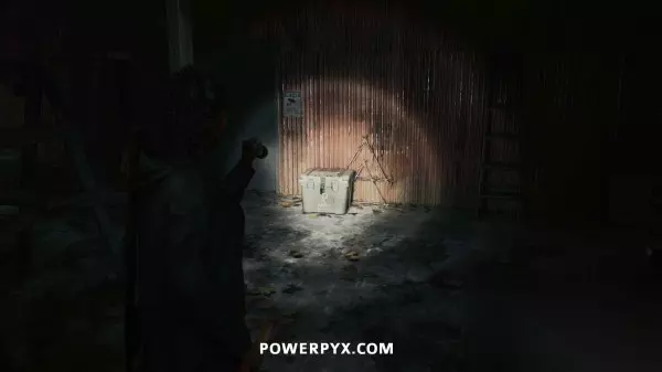 藏匿物09(拖车公园藏匿物钥匙) 击败富水镇BOSS让洪水消失后,返回拖车公园,其中有一辆之前被淹没的拖车此时已经可以进入了,在这台拖车旁边可以找到这个藏匿物。钥匙就在藏匿物后面的灯柱顶端,沿着木板往上走即可拿到。