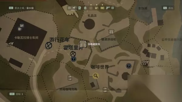 藏匿物08(咖啡世界藏匿物钥匙) 在霍塔里井后面的一棵树旁边,需要用咖啡世界藏匿物钥匙才能开启。往东走到巨大的圆形雕像前,钥匙就在雕像后面的地上。