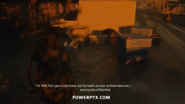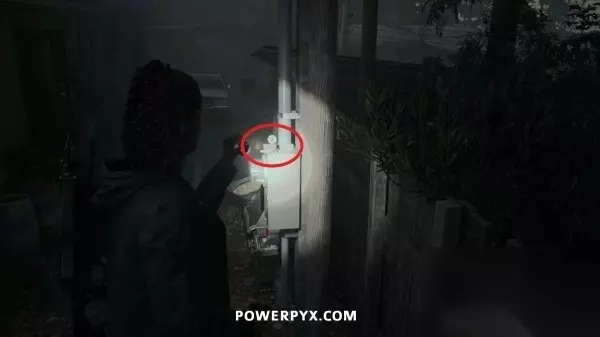 藏匿物19 在餐厅和警察局之间上锁的栅栏内,使用切割器可以进入。密码可以在公园里找到对应的符号,一个在雷达天线上,一个在凉亭里,还有一个在长椅旁边。