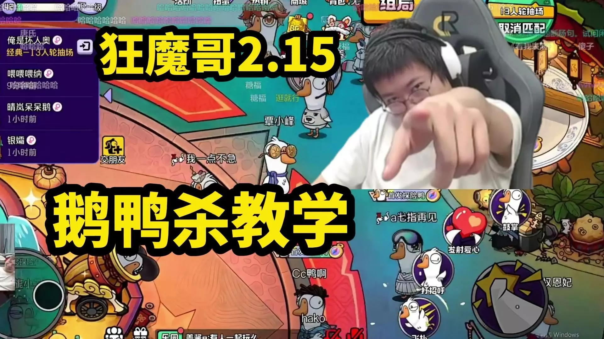 【狂魔哥】2.15鹅鸭杀 素材来自某牙直播狂魔哥解说 狂魔哥解说的直播间: hy/919191 狂魔哥解说的B站空间: https://space.bilibi…