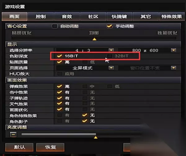5、再点击画面,把色彩深度改为16bit。