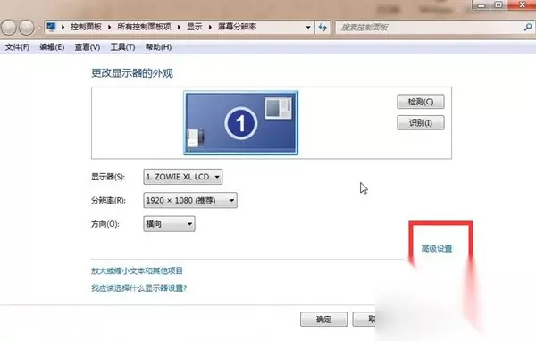 2、弹出控制面板,点击高级设置。
