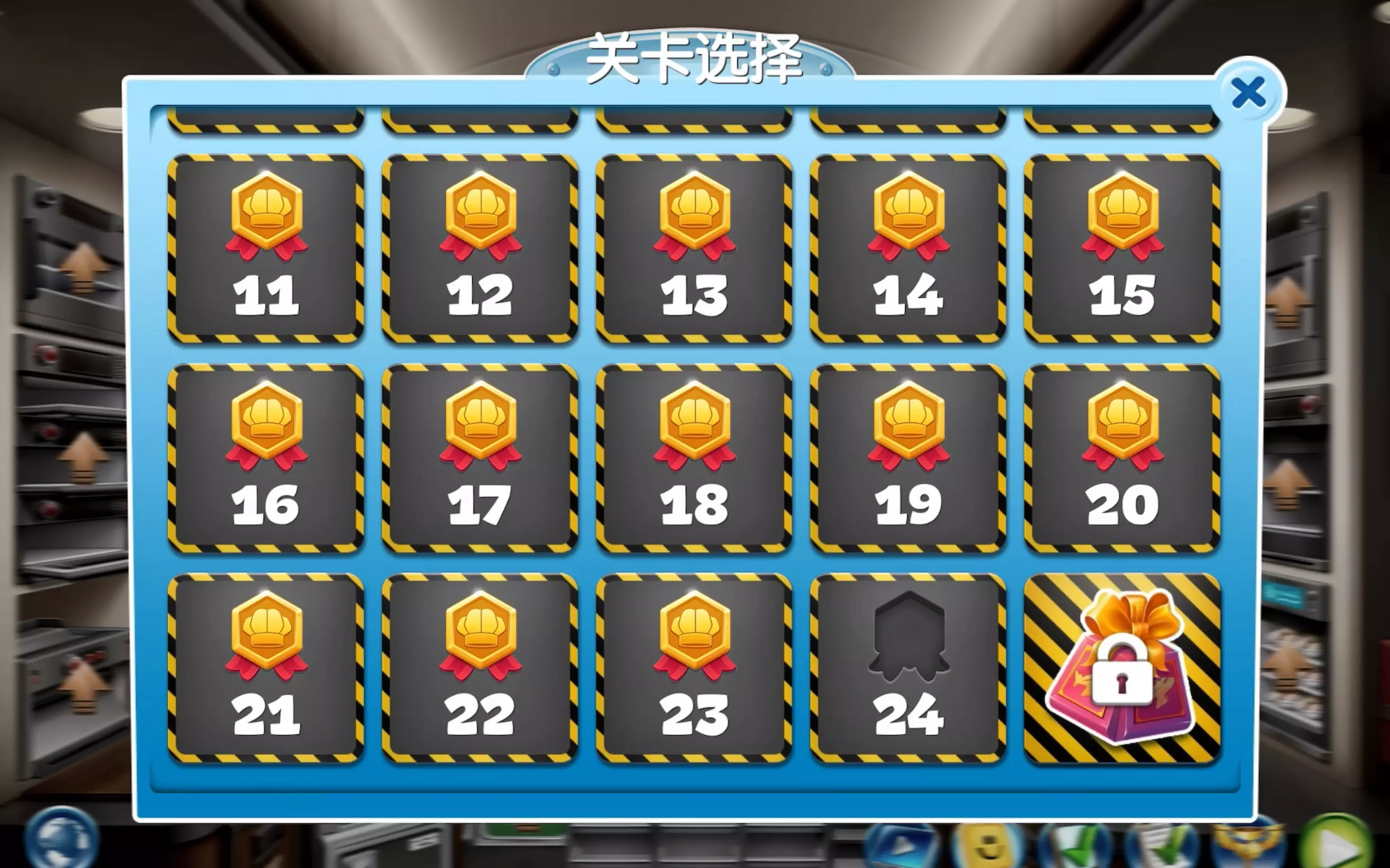 玩家分享自己通关《飞机大厨》伦敦50关的游戏体验,表示伦敦机场关卡是除丹佛外自己打得最顺手的,还展示了游戏内厨房备餐、服务乘客等场景以及关卡完成情况。