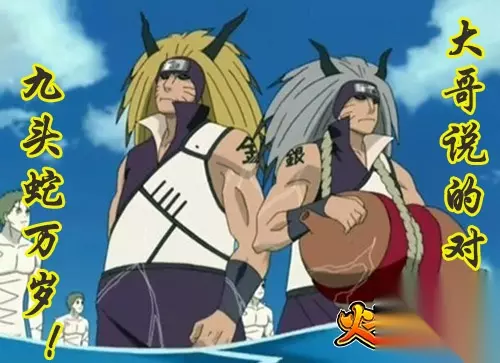 金银兄弟 金银角部队是云忍的精英军团,为啥提这么个部队呢,因为木叶牛逼哄哄的二代火影千手扉间的死就和这支部队有关!当年二代火影带了6个人执行任务,其中有猿飞日斩、志村团藏、转寝小春、水户门炎、宇智波镜、秋道取风,豪华阵容啊有木有,但最后还是把扉间坑进去了,可见金角部队的实力真的很强,不过也有可能是被六道的宝贝坑惨了吧。 赶快加入九头蛇…噢不,《忍龙》与其他火影玩家一痛建立属于自己的神秘组织吧,九头蛇万岁! 劲爆猛料!精彩讨论!尽在233乐园新游论坛>>>