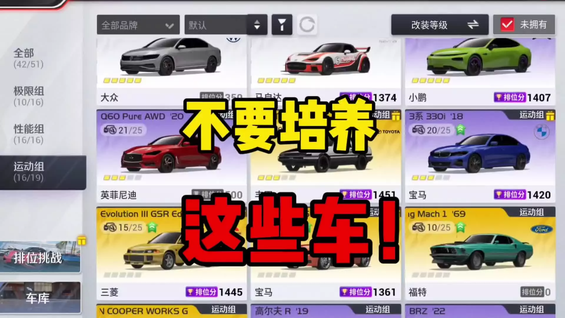 巅峰极速:运动组这些车千万别培养,不然会白白浪费材料!