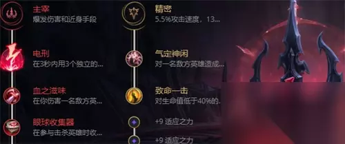 在符文方面我可以选择电刑、血之滋味、眼球收集器、贪欲猎手、气定神闲、致命一击。