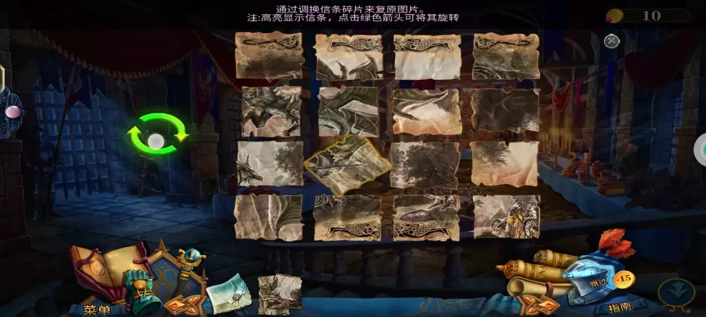 这是《密室逃脱15神秘宫殿》的解谜内容展示,呈现了游戏的启动界面、剧情对话,还有调换信条碎片复原图片的解谜关卡,完成解谜后可进入新场景,带你体验这款密室逃脱游戏的解谜乐趣。