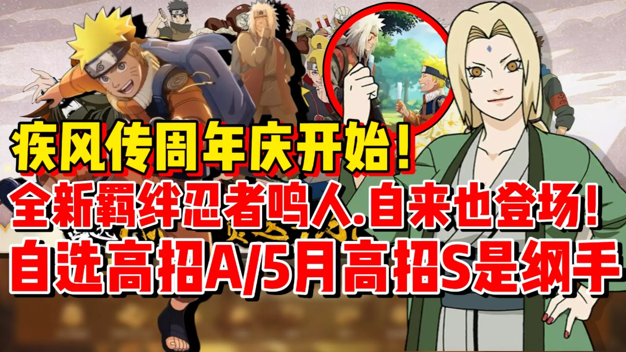 火影忍者手游开启疾风传10周年活动,5月8日起活跃可领300张特殊招募券,能免费获取S忍自来也·漩涡鸣人羁绊忍者,还有自选A忍活动回归,5月15日还将开启S忍纲手的高级招募。