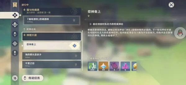 原神祭神奏上任务攻略 祭神奏上世界任务图文攻略: 1、前往绀田村东北方的荒废神社,具体位置在影向山。