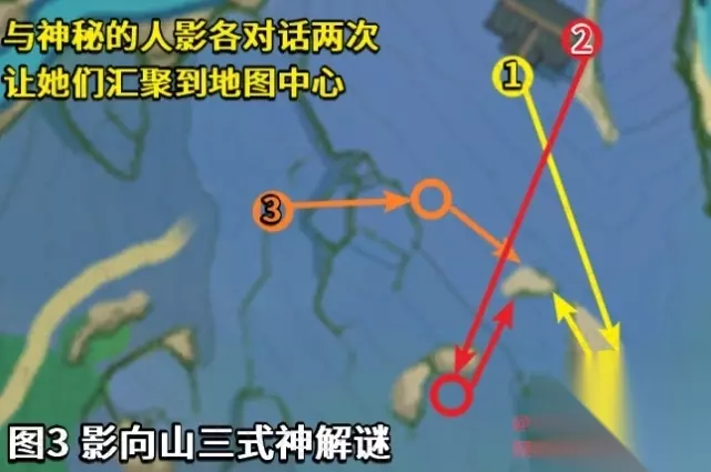 3、一共有三个谜样的人影,每个人影都要引导两次,也就是说总共要引导六次。