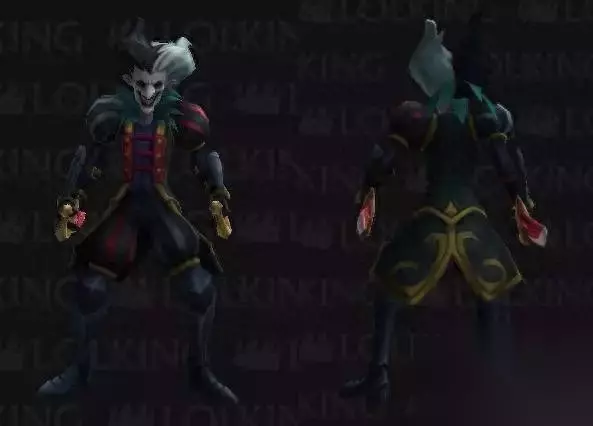万能小丑,Wild Card Shaco,小丑唯一一款成系列的皮肤,万能牌,王牌,的意思,小丑唯一一个系列皮肤,不过这五个开黑基本上是坑。 这个皮肤性价比很高,甚至超越了恐惧之源,因为这个皮肤制作的很晚,越晚的皮肤设计理念自然就越好,细节也更加细腻,美学逻辑也符合现在的审美观,及时没有特效,却有着特效皮肤所没有的特色。