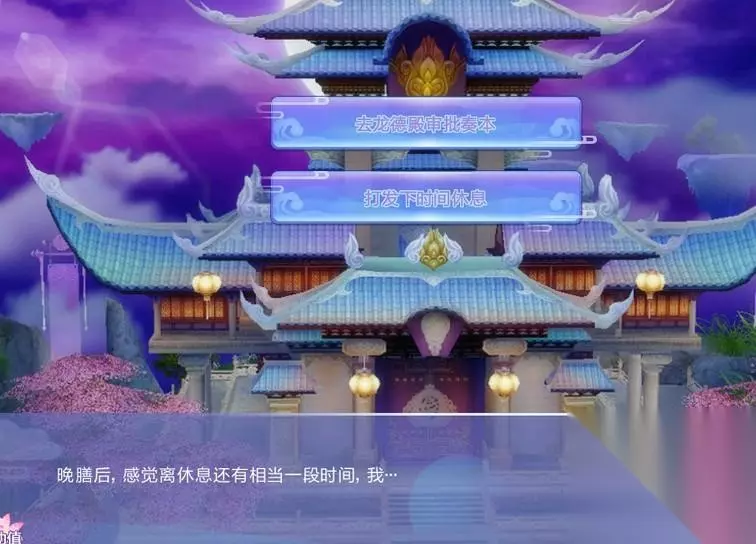 这两个选项,总共会出现三次,分别是探望妲己后,探望蝶妃后,探望慧妃后出现,所以我只在这里说一次,之后就不再说了。两个选项分别会触发两种不同的结局,若全部选择批奏本,那么最后触发的结局叫龙凤鸳鸯,若全部选择休息,那么后面触发的结局叫雄蜂雌蝶,男角色目前一共就只有这两种结局。 接下来我们去探望蝶妃: