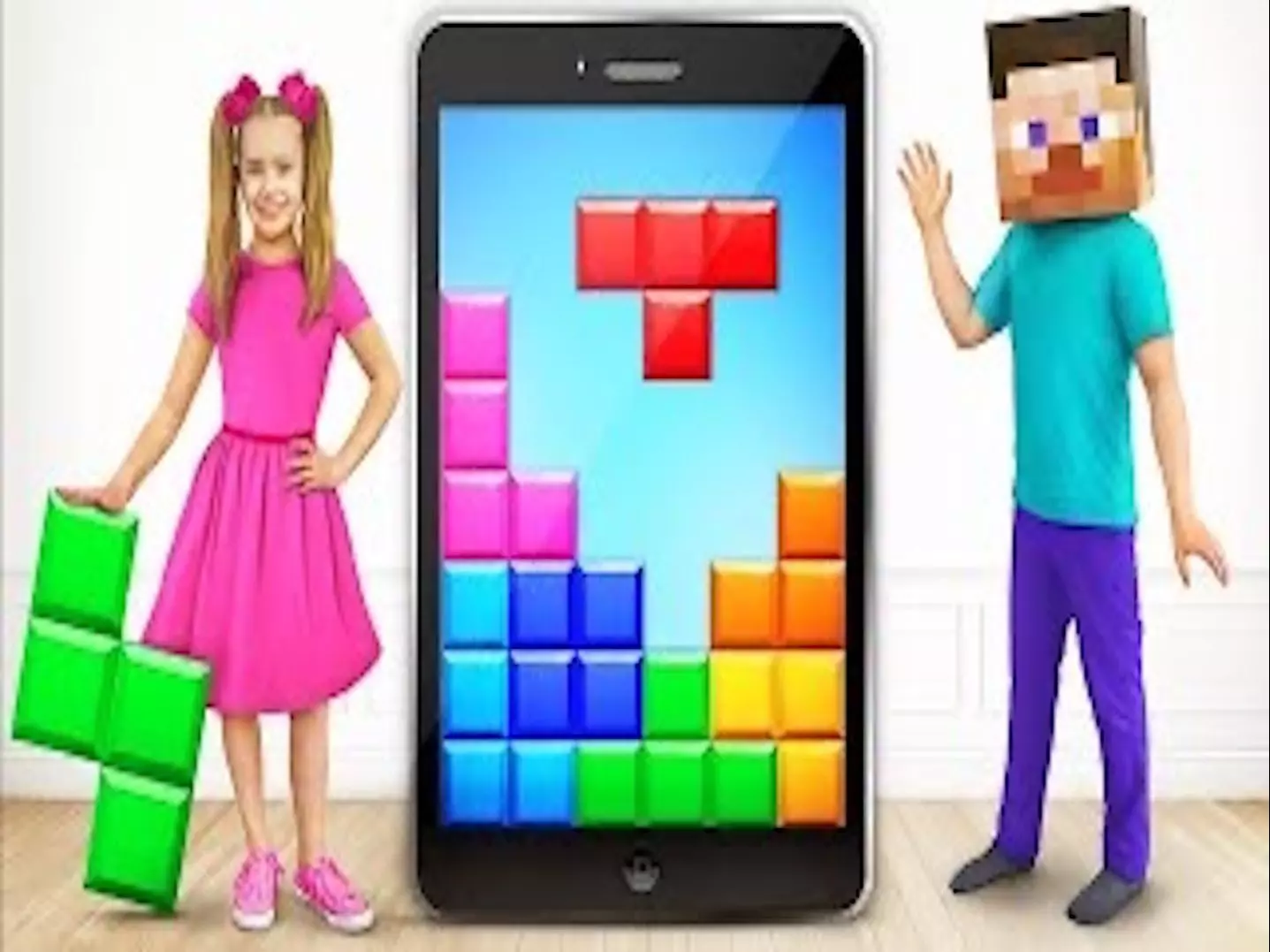 俄罗斯方块塔中的斯拉瓦和团队合作挑战 微笑家庭