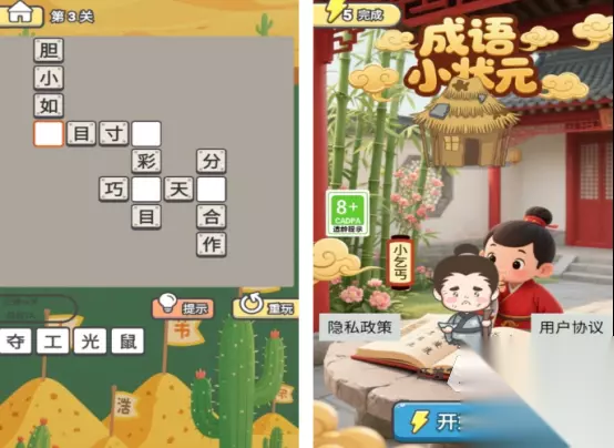 创新融合垂钓模拟与修真养成的单机作品。玩家通过垂钓获取灵材与灵石,用于修炼功法、炼制丹药、锻造法宝。修为等级与钓鱼熟练度同步成长,资源循环闭环,无强制体力限制,节奏舒缓可控。 手机扫码下载233乐园APP预约 预约订阅最新动态 优先233乐园APP下载 9、《成语小状元》