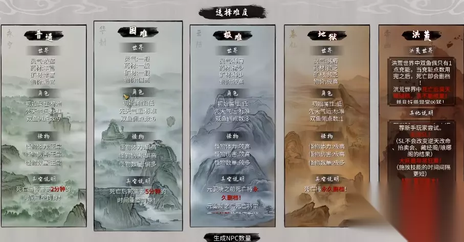 开局首先得选个游戏难度,这游戏难度是阶梯式的,别头铁一开始就挑战地狱或者洪荒,那会让你的修仙路开局就充满挫折。新手老弟老妹们,咱就先从普通或者困难上手,熟悉了玩法套路,二周目再考虑更高的挑战,不然容易被怪揍得找不着北。选好难度,就来到了关键的捏脸环节,这里不只是为了好看,你捏的脸会直接影响魅力值,魅力高了,后面和那些NPC打交道会顺利很多,求人办事、刷好感度都轻松。至于先天气运,这可是开局自带的天赋,至关重要,咱得好好刷刷。