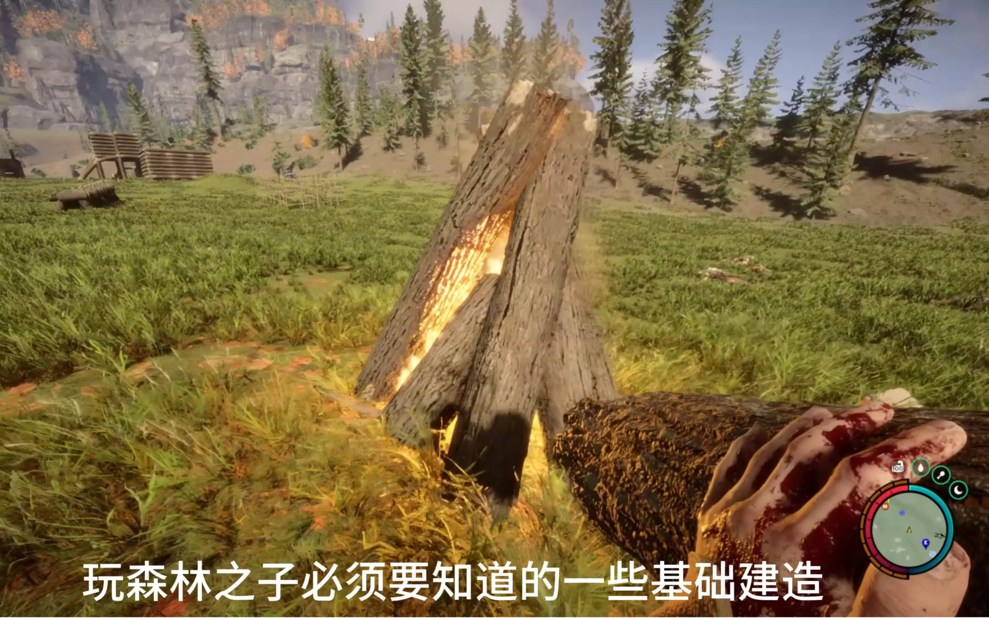 这是《森林之子》的新手教程内容,展示了游戏里的资源收集、物品整理等生存环节,还呈现了建造大别墅的前期准备,帮助新手快速上手游戏生存与建造玩法。