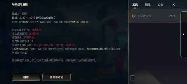 1.外挂作弊类:使用自动走位、技能命中、视野显示等第三方程序。安全团队对使用外挂行为采取"核实,必将封号"的零容忍政策 2.消极游戏类: 故意送人头:连续多次无意义死亡,如0-24-3的极端数据表现 挂机/AFK:停止活跃或离开游戏,系统会通过暂离检测机制识别 演员行为:恶意操纵排位赛结果,此类行为在2025年7月有396个账号被封禁1年且不允许处罚减免 3.言语违规类: 使用仇恨言论、种族诋毁、跨文化辱骂 故意且恶意侮辱其他玩家 再三消极发言,破坏团队氛围 Q2:举报真的有作用吗? A:官方确实会处理有效举报,但存在以下几个现实情况: 处理时间差:部分举报需要人工审核,无法立即反馈处理结果 证据充分性:证据不足或描述不清的举报可能无法触发处罚 系统误判:早期的裁决之镰系统因判断不够严谨导致误伤,后期为避免此问题,处理更为慎重 二、如何正确进行举报? Q3:游戏内举报的具体步骤是什么? A:游戏内举报是最直接有效的方式,操作流程如下: 1.对局结束页面举报: 步骤一:游戏结束后,在对局数据统计界面找到可疑玩家 步骤二:点击该玩家右侧的红色感叹号图标 步骤三:选择对应的违规类型(可多选) 步骤四:补充具体描述(如有必要) 步骤五:确认提交举报 2.游戏内历史记录举报: 步骤一:点击客户端上方 步骤二:选择"记录"找到相关对局 步骤三:点击该对局右侧的"举报"按钮 步骤四:按提示完成举报流程 Q4:游戏外还有哪些举报渠道? A:除游戏内举报外,还可通过以下渠道补充举报: 1.官方网站举报: 访问英雄联盟官网,在"中心"或"专区"详细举报 需提供游戏ID、对局时间、具体违规行为描述 2.腾讯游戏安全中心: 通过微信小程序或公众号"腾讯游戏安全中心"举报 可开启英雄联盟登录保护功能,实时监控账号安全状态 3.社交媒体渠道: 通过英雄联盟官方微博、微信公众号留言举报 注意描述清晰,避免使用情绪化语言 三、如何提高举报成功率? Q5:为什么同样的举报,有的人成功有的人失败? A:举报成功率主要取决于以下几个关键因素: 1.证据充分性: 截图证据:包含游戏时间、玩家ID、违规行为的截图 聊天记录:言语辱骂等行为的完整对话记录 数据异常:异常KDA、装备购买等可疑数据 2.举报描述质量: 准确描述违规行为发生的时间点 明确指出违规行为的具体表现 避免使用主观情绪化词汇,客观陈述事实 3.举报时效性: 对局结束后立即举报效果最佳 距离对局时间越久,处理难度越大 Q6:什么样的举报最容易被处理? A:根据官方处理优先级,以下举报类型处理效率最高: 1.外挂程序使用:有明确视频或数据证据的外挂行为 2.剧组演员行为:影响排位公平性的有组织违规 3.多次被举报玩家:信誉分低、被举报次数多的玩家会进入高优先级审核队列 四、举报后的处理流程 Q7:提交举报后,官方如何处理? A:官方处理举报遵循标准流程: 1.系统初筛:通过仲裁骑士系统的四个子系统进行初步检测: 暂离检测系统:识别挂机/AFK行为 送人头检测系统:分析故意死亡模式 即时反馈系统:对明显违规实时处理 审判天使系统:玩家参与的案件审判机制 2.人工审核:部分案件会转至客服代表进行人工审查 3.处罚执行: 轻度违规:扣除信誉分、限制模式访问 中度违规:延长匹配等待时间(5分钟至20分钟不等) 严重违规:封停账号,时长从3天至永久不等 Q8:如何知道举报是否成功? A:可通过以下方式获取举报反馈: 1.游戏内通知:登录游戏时,如有举报处理结果,会收到系统消息 2.信誉分变化:通过个人资料查看信誉分是否恢复 3.违规玩家状态:观察被举报玩家是否仍在正常游戏 五、高级举报技巧 Q9:除了基本举报,还有什么提升举报效果的方法? A:资深玩家总结的进阶技巧包括: 1.多人协同举报:同一对局中多名玩家同时举报同一违规者,会显著提高处理优先级 2.时间点标记:在举报描述中精确到分钟指出违规行为发生时间,便于官方快速定位审核 3.证据链完整:提供从违规开始到结束的连续证据,而非单一片段 Q10:举报时有哪些常见错误需要避免? A:以下错误会显著降低举报成功率: 1.情绪化描述:使用辱骂、攻击性语言反而可能导致自身被处罚 2.无差别举报:因游戏表现差但非故意违规的玩家举报 3.证据造假:伪造截图或聊天记录,一旦发现将承担法律责任 六、特殊情况的处理 Q11:遇到疑似但不确定的违规该怎么办? A:建议采取以下策略: 1.观察模式:连续多局观察该玩家行为是否持续异常 2.数据对比:对比该玩家历史数据,判断是否存在突变 3.谨慎举报:在证据不足情况下,可选择暂时不举报,避免浪费审核资源 Q12:举报后没有立即处理是什么原因? A:可能由以下因素造成: 1.证据不足:系统无法仅凭单次举报确认为违规 2.阈值限制:部分处罚机制需要达到一定举报次数或严重程度才会触发 3.人工审核队列:复杂案件需要排队等待人工处理 维护游戏环境的其他方式 除了举报违规玩家外,每位玩家还可以通过以下方式贡献力量: 自身遵守规则:严格自律,不参与任何形式的违规行为 积极沟通:在游戏中保持友好态度,缓解团队紧张氛围 普及知识:向新手玩家传授正确的游戏态度和举报方法 通过掌握以上系统的举报方法与技巧,玩家不仅能有效处理遇到的违规行为,还能为营造更加公平健康的游戏环境贡献力量。官方数据显示,持续的游戏环境治理已取得显著成效,仅2025年7月就有数万违规账号受到处罚。只有玩家与官方