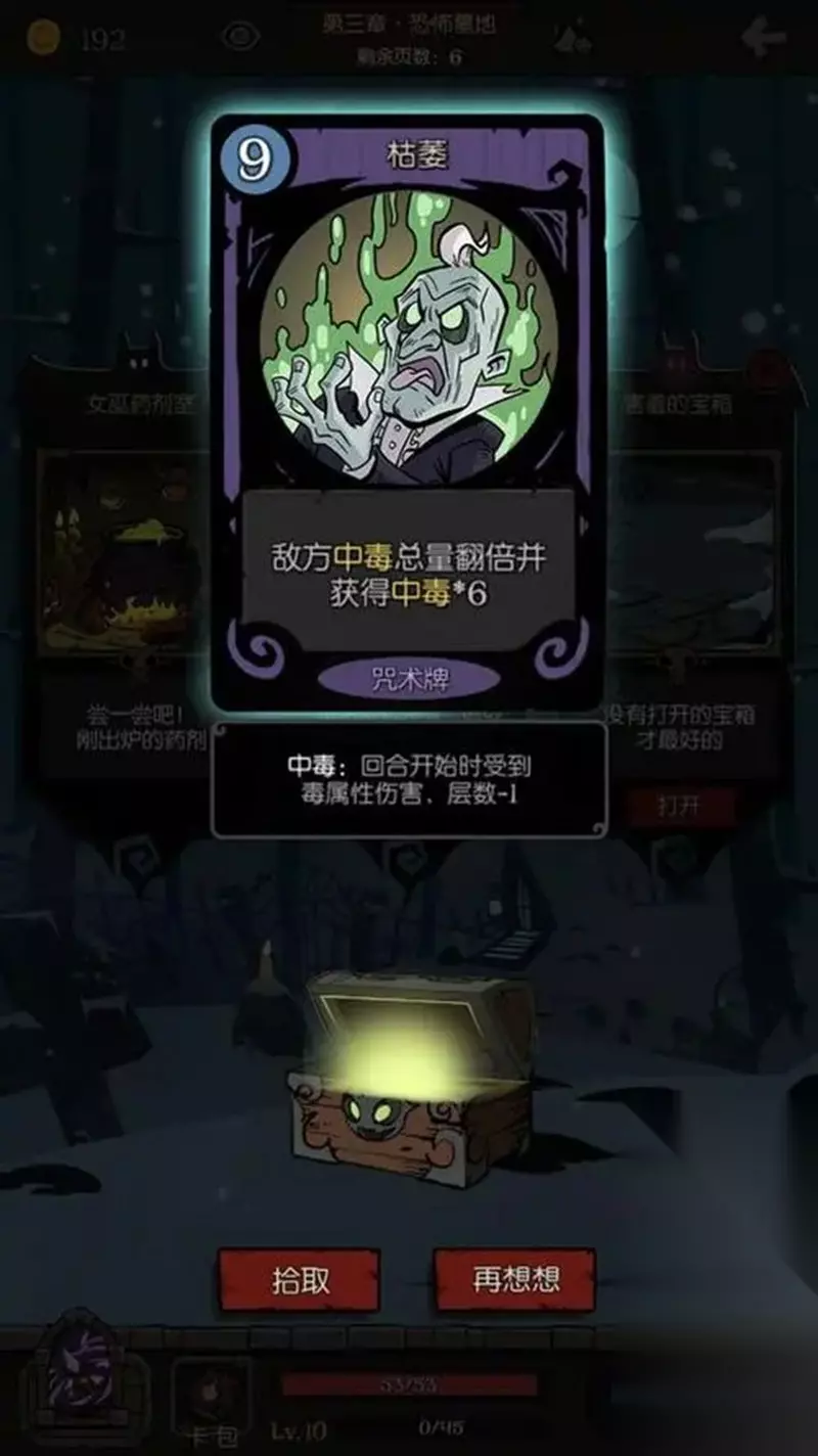 羸弱之躯成就要求玩家在单场战斗中,让敌人身上的中毒、烧伤、寒冷和黏着四种负面状态的总和达到999层。建议选择毒女巫作为挑战角色,这个职业拥有大量可以叠加中毒效果的卡牌。核心卡牌是枯萎,这张卡能快速叠加中毒层数,配合酸性炸弹和毒性蔓延可以更高效地积累状态层数。