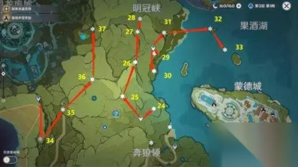 明冠峡、果酒湖24-37 24、空中,收集风精灵。 25、坡下被石封了,元素视野。 26、悬崖。 27、风墙,从高处飞进去。 28、石制楼梯下,元素视野击碎石封。 29、山崖下的石封,元素视野。 30、大1树上,从山崖上飞下来。 31、高空,底下有风场。 32、高空,风杯激活。 33、空中,旁边两个岛上的风杯激活。 34、山商突出的小平台。 35、悬崖旁。 36、地上。 37、空中,底下有风杯激活。