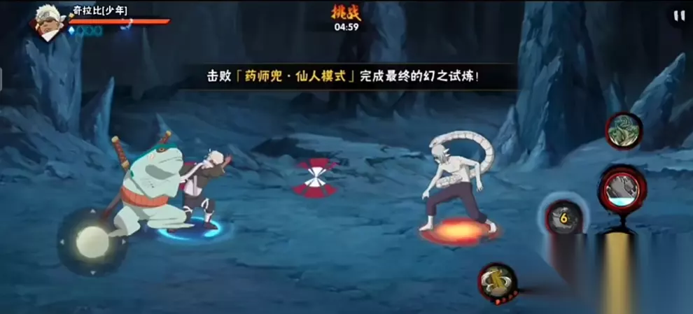 秘卷选择方面推荐以生存为核心,无敌和回血类秘卷能显著提高容错率,配合奥义回血、铁壁查克拉等增益效果可形成持续作战能力。通灵兽建议选择蛤蟆广提升输出,通过秘卷给豆机制实现奥义循环。战斗过程中需注意,当仙人兜释放音忍五人众技能时,地面泛红光提示大范围伤害,必须优先躲避。保持血量健康是通关关键,小伤害可硬抗但必须规避致命攻击。