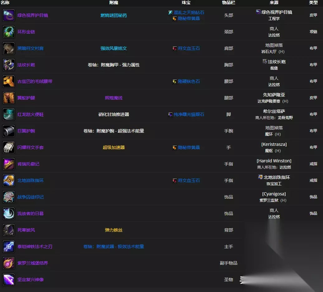 团本一阶段套装毕业装备和附魔一览
