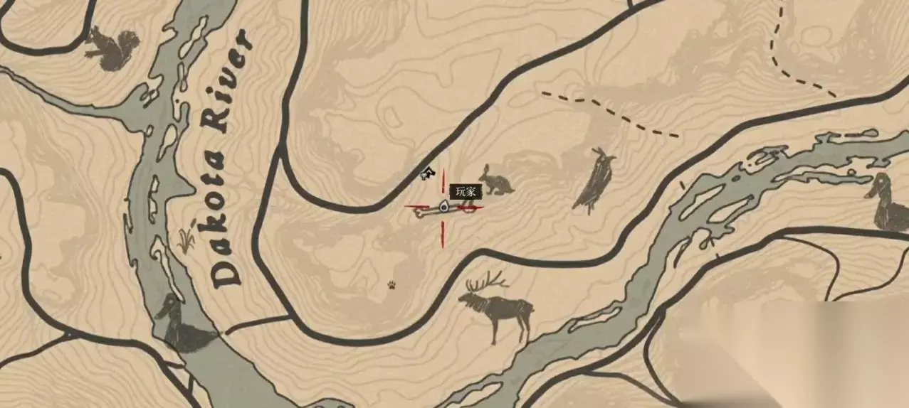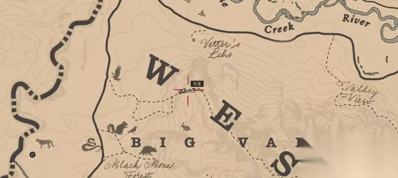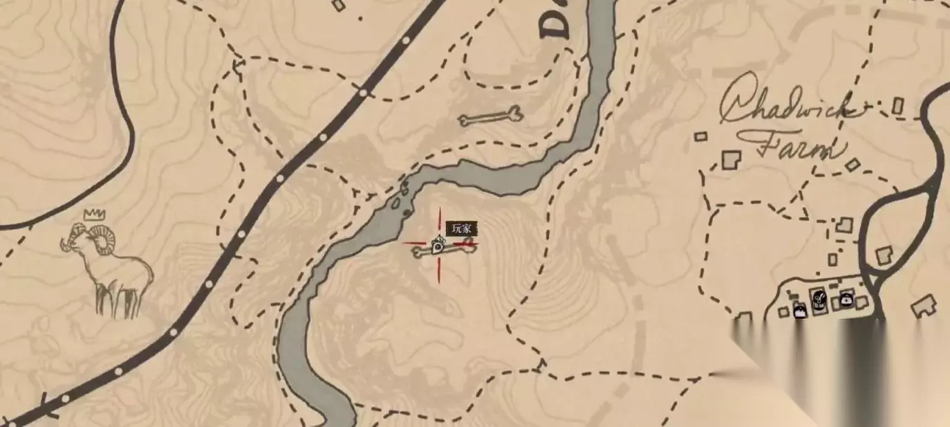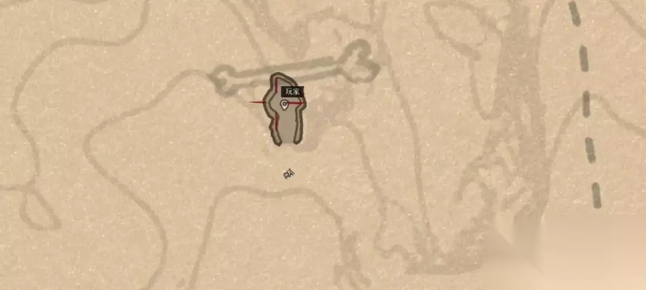 恐龙骨在标点处,先骑马来到上图我所在的位置,再根据下图的路线走。