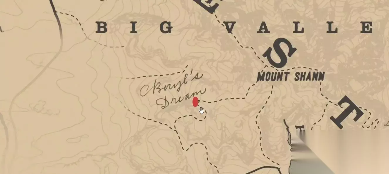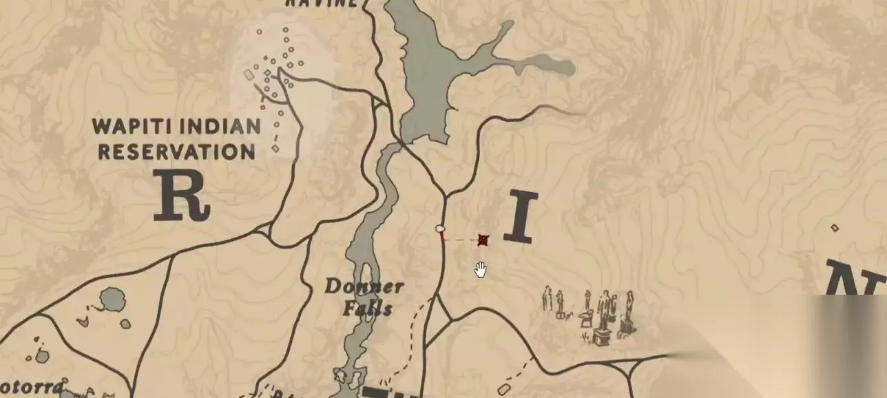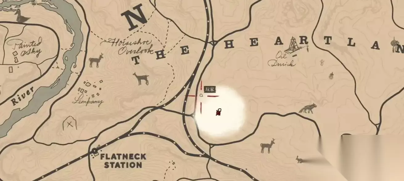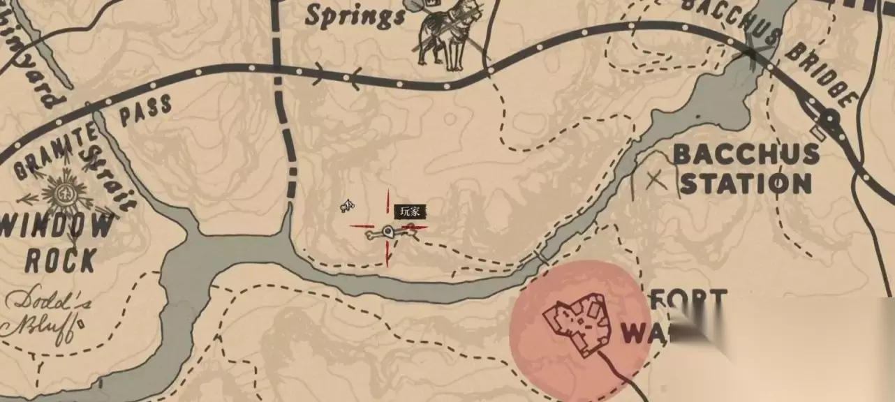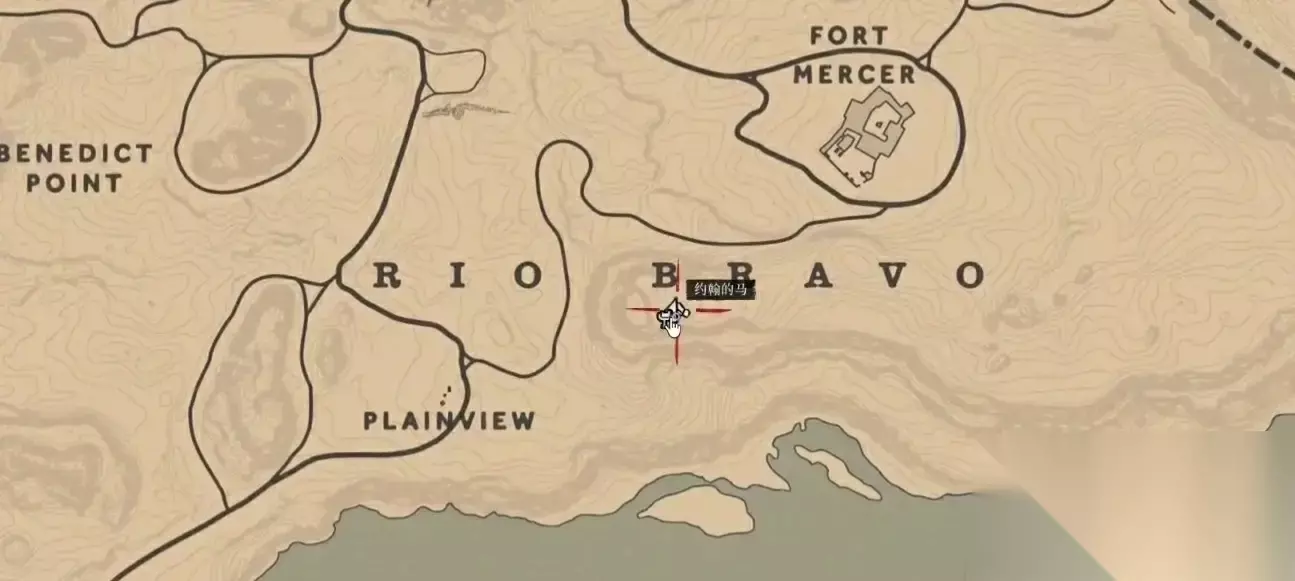 恐龙骨在标点处,先骑马来到上图我所在的位置,再根据下图的路线走。