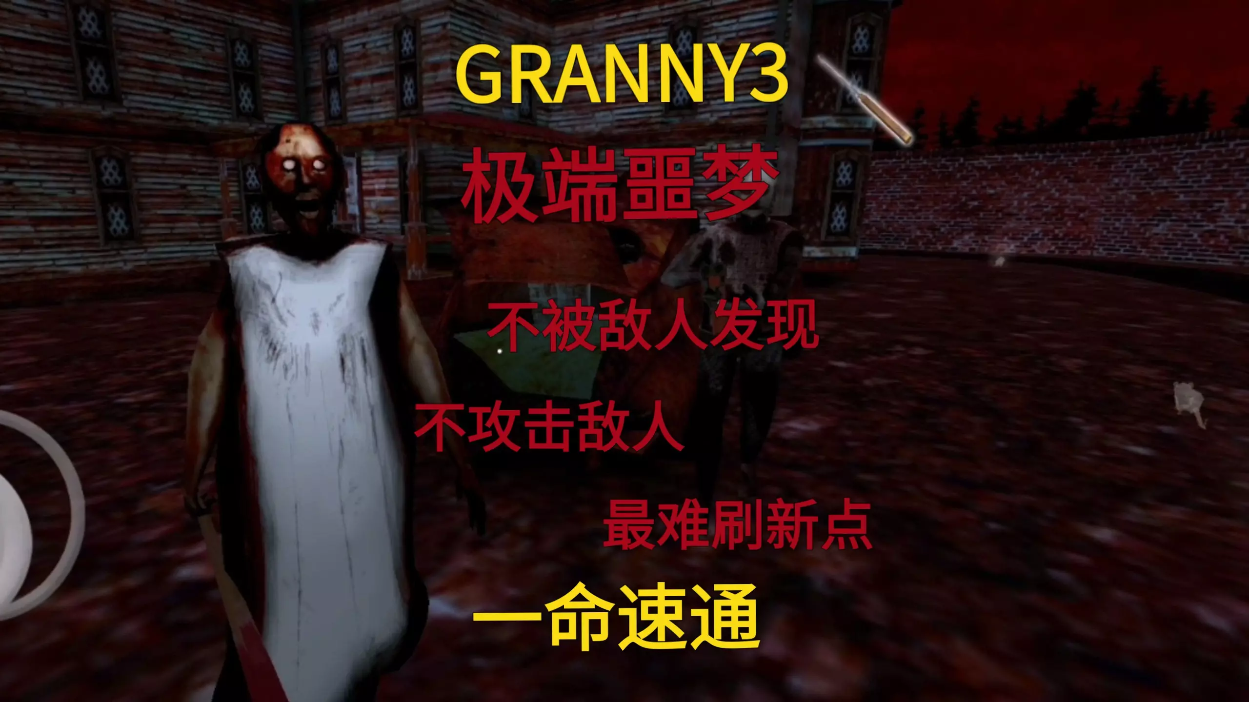 GRANNY3 极端噩梦 不攻击敌人 不被敌人发现 弹弓只能用一发 火车路线 一命速通
