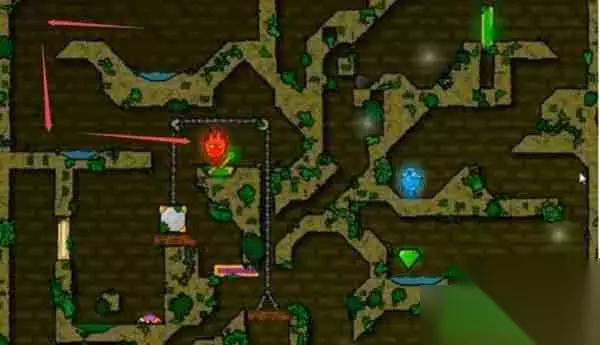 森林冰火人24关详细通关指南: 本攻略将指导您顺利完成森林冰火人第24关的挑战。本关需要冰火二人精诚合作,巧妙利用机关。 第一步:火人启动机关 首先,火人需要移动到如图所示的机关位置。
