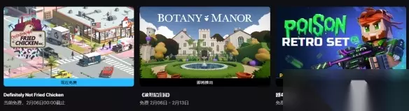 3.Epic喜加一:经营模拟游戏《绝对不是炸鸡》免费领取! Epic本周喜加一游戏正式公布,经营模拟游戏《绝对不是炸鸡》免费领取,截止到2月6日00:00。Epic下周送出《Botany Manor》和《Pixel Gun 3D》剧毒复古套装。 >>>点击前往领取