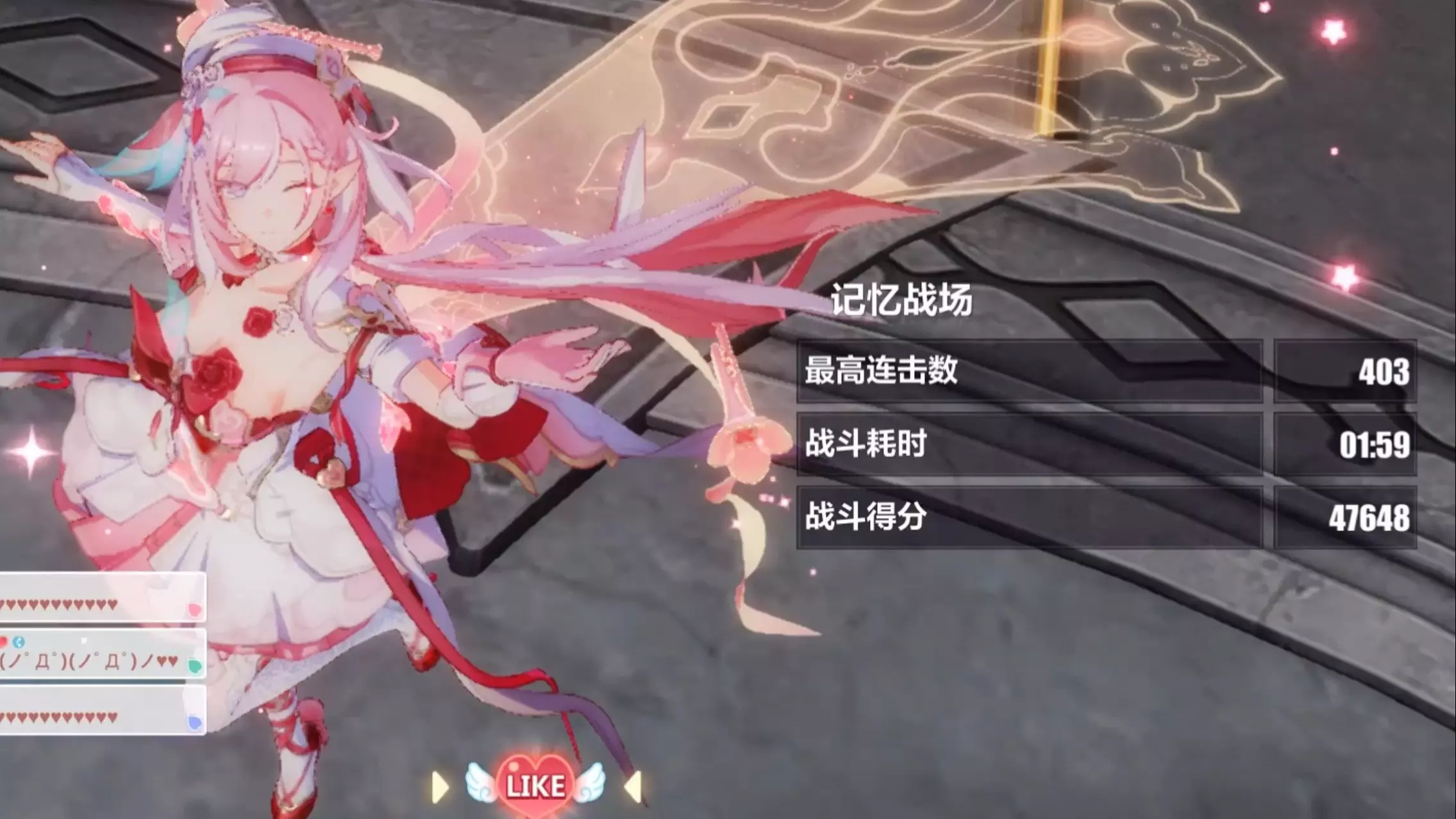 这是崩坏3测试服v3.5的终极区战场内容,玩家借号使用s0+3琪亚娜、ss0+3月魄的阵容,1秒打出47968伤害击败罗志祥虚无主义,还分享了琪亚娜升阶后的伤害提升空间,以及战斗中转阶段的操作细节与问题。