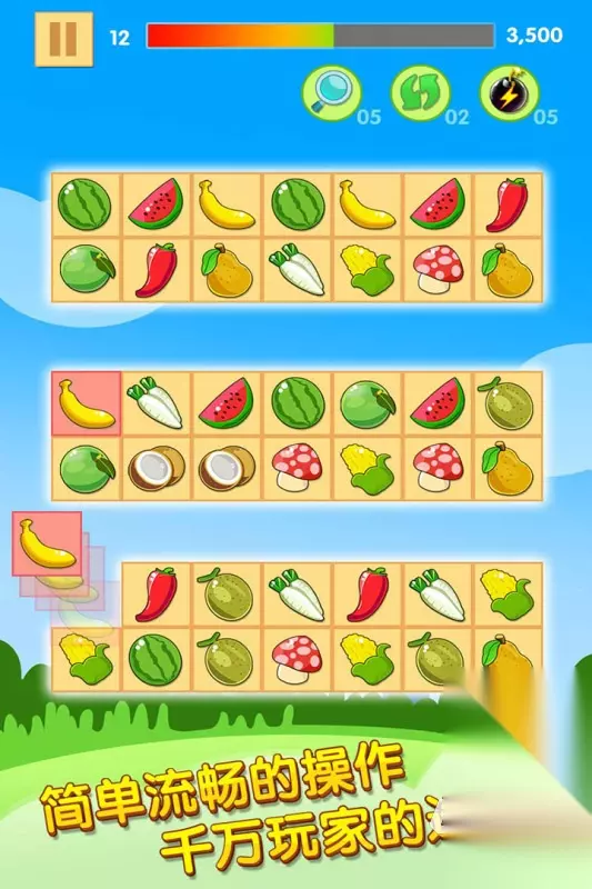 率先登场的就是这款《数字连连看》手游了,清新有趣的画面风格,给我们的玩家的体验感是很好的,哪怕是自己在闯关的过程中遇到了难点,大家也可以去用道具来解决这样的问题,游戏之中的界面还是比较干净的,在每一次的挑战之中,都可以沉浸在游戏里面,这样的玩法还算比较有趣。 高速下载 普通下载 优先233乐园APP下载 2、《趣味果蔬连连看》