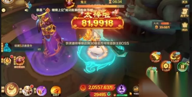 要想打鬼王可没有你想象的这么简单,你自然就需要保证自己的等级达到30级。如果等级没有达到30级,那就只能够干看着就算着急也没有用。等到等级达到30级之后就可以和鬼王过招,这个场面真的是比较热闹的。当你在开打之前,系统还会给你来一个太禄陆 81,9918的提示,虽然并不知道这是一种什么样的特殊buff,但是总会让人觉得热血沸腾。在打的时候,鬼王确实有一些难缠,从战斗的画面你就可以看到会有各种乱飞的技能特效。