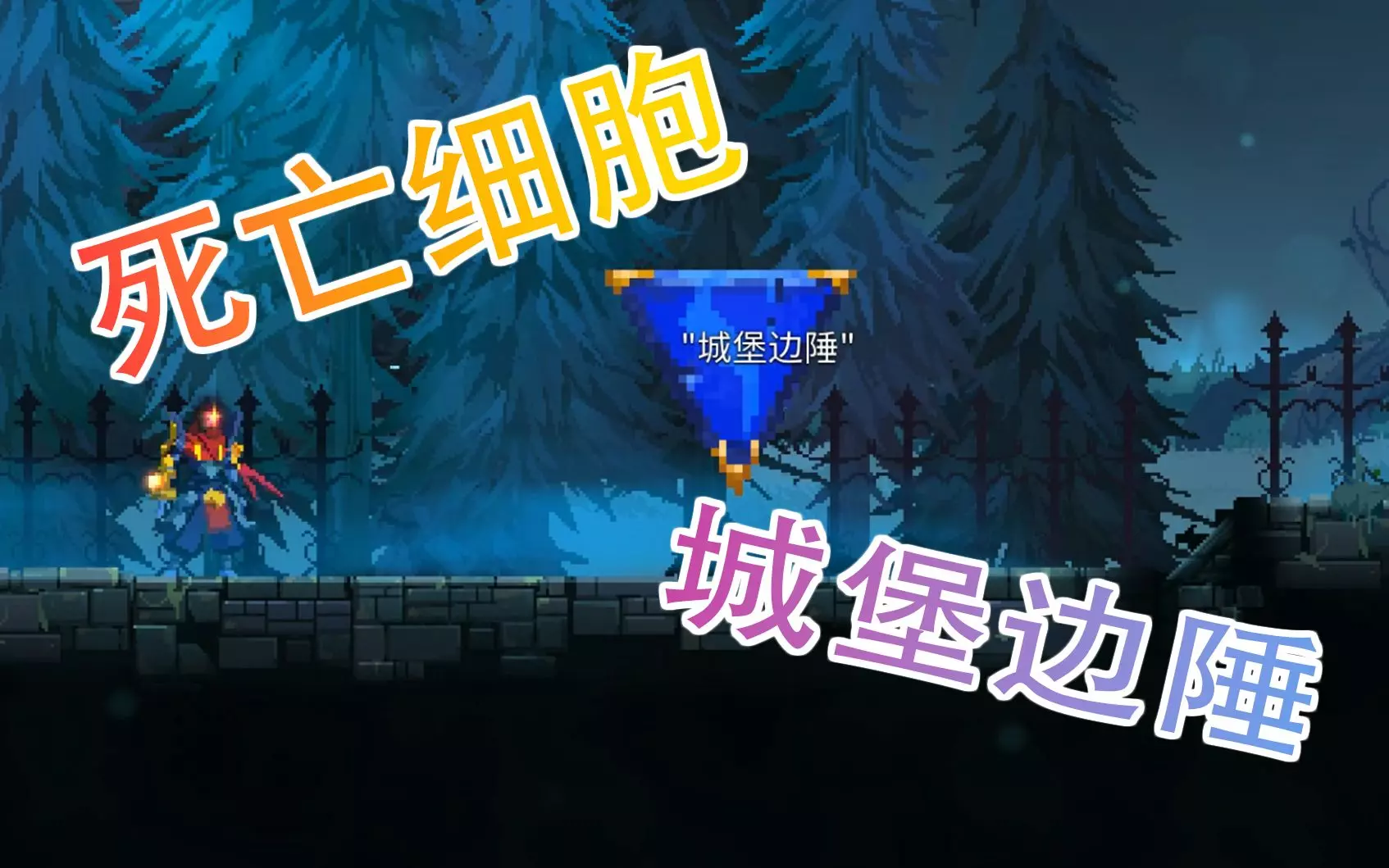 玩家分享《重生细胞》的游戏内容,展示了城堡边陲关卡的场景,同时表示自己在这个关卡遇到了无法前进的难题。