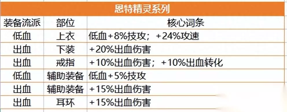 二、核心自定义 当前版本最主流的2个流派分别是攻速出血流和空血流,因此针对这两个流派列出以下表格,供勇士们参考。 1、恩特精灵