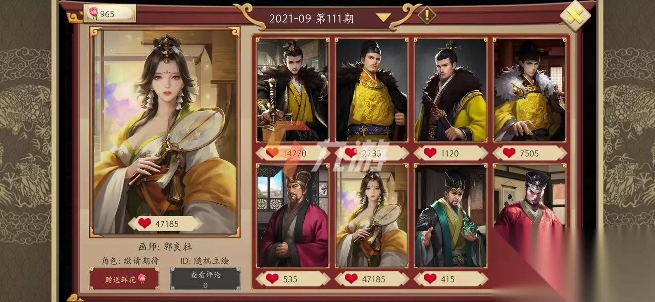 首先目前官方的宣传图背景有这个角色的实际画面,如上图所示。可以看到首先黄色的衣服再古代,基本上都是皇室专用的颜色,而这张图里面的角色衣服基本都是黄色为主,这个角色的画师非常擅于画历史人物,所以这个是不会错的。