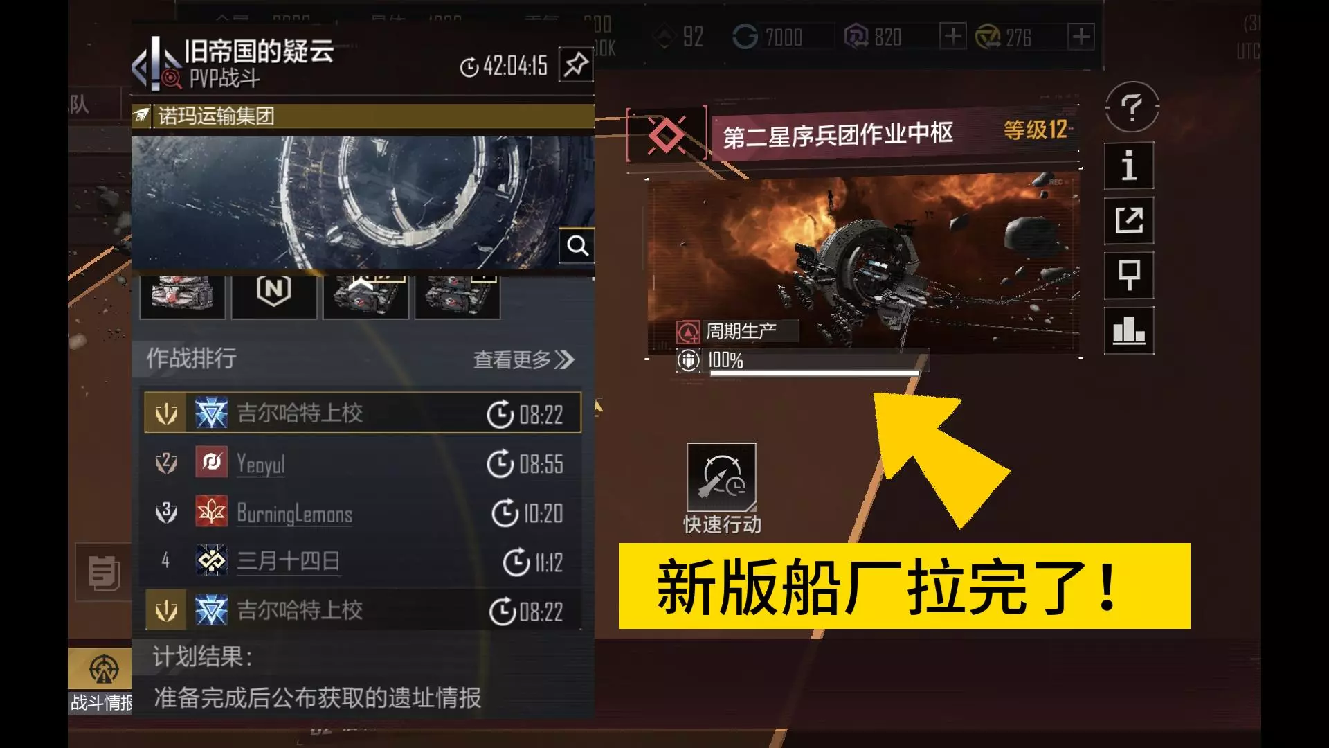 玩家首次挑战艾格勒姆的旧帝国造船厂遗址残垣副本,在舰队作战后,获得了损坏的战列舰数据资料档案04,作战中阋神星级-重炮型战舰输出亮眼。