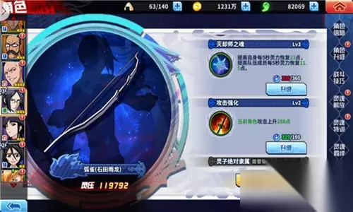 配合石田雨龙的四阶有效的降低对手的灵力,对攻击低于自身灵力的稳定增伤,5星以上的绫濑川弓亲奥义技能还能额外吸收更多的灵力。 斩月的二阶同样是给队友提供了灵力的保障,加速大招的爆发,加上自身UR属性优势,可以打出不俗的伤害。 点评:因为存在UR,所以斩魄刀成型比较慢;在没有斩月的情况下可以使用拥有灵力释放且斩魄刀碎片较易获得的角色,如松本乱菊、阿散井恋次等代替。