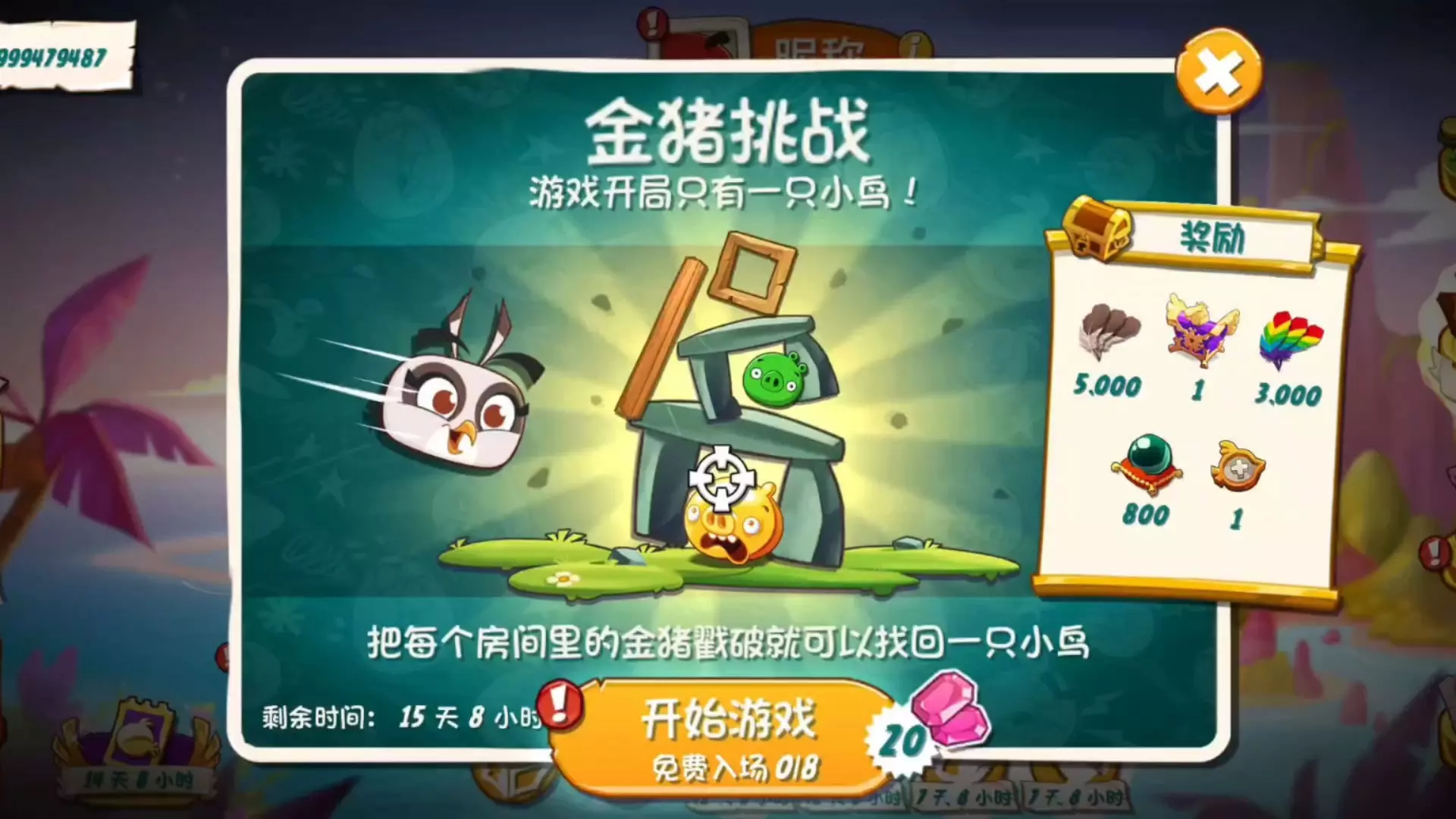 这是《愤怒的小鸟2》4月15日思黛拉金猪挑战的通关内容分享,本次金猪挑战整体难度不高,仅第7、第8关卡稍微需要一点运气即可通关。