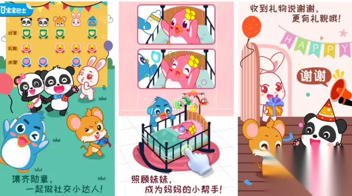 这款宝宝系列的知识认知类手游呈现出的代入感相当不错,玩家将进入游戏跟可爱的熊猫NPC学习各种知识,优秀的互动性跟学习认知类的玩法进行结合,游戏展现出的学习类模式超级丰富,多样的启蒙环节协助小朋友认知各种汉字和拼音,边玩边学快速激发兴趣的游戏机制自然也是小朋友的最爱。 》》》》》#宝宝巴士拼音#《《《《《 8、《宝宝情商养成》