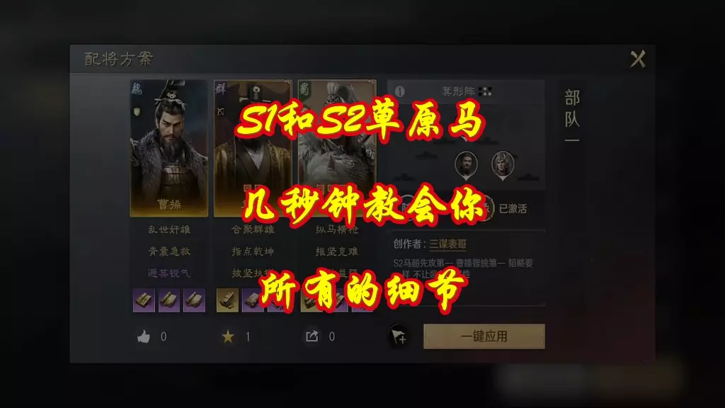 《率土之滨》里的曹操是游戏第一大核心武将,强度高且百搭。他的S级指挥战法“魏武之世”可降低敌军全体四维属性,还能增加我军全体攻击距离,能为队伍带来增伤,克制各类队伍。