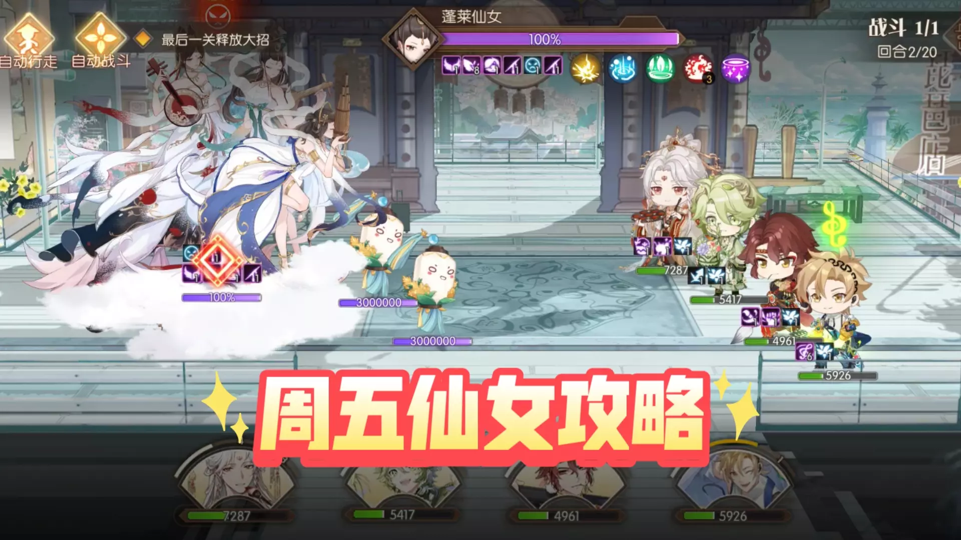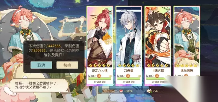开局的时候,用腰子开局放大招。等到第三回合,用上担仔面帮助玉麟香腰放大。之后就可以用担仔面和腰子的二技能,进行循环使用了。boss究极机关兔同样拥有眩晕的控制技能,与天狗不同的是,它主要针对于攻击最高的角色。配队可以采用火锅队阵容,其中八大碗和火锅是核心。除了火锅队,也可以用硬抗队。带上武陵酒就能嘲讽boss,让boss的眩晕控制落到自己身上,不让它去晕高输出。此处需要注意的是,若带了武陵酒,一定要注意层数,等到了五层再用大招。