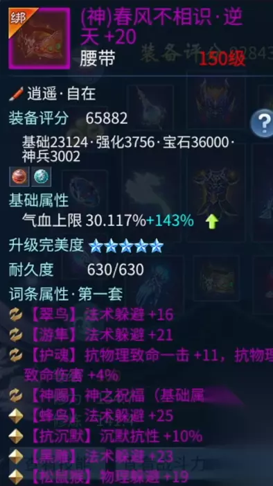 咔咔 鞋子和帽子的思路一样,走的是法术躲避加元素抗性的属性。 腰带是躲避加一条基础属性50%提升,保证血量上的健康。
