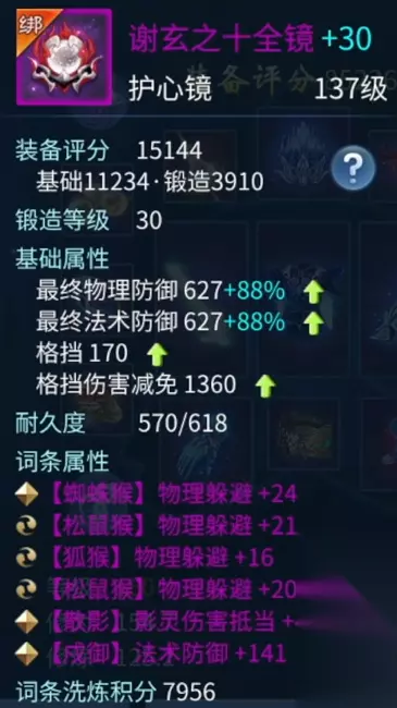 柳月影 还有一个是项链中的两条元素抗性加腹语真言等级是比较关键的词条。 护心镜比较重要的词条是躲避,因为方士有些时候可能会出现在单挑的对战中,所以基本上还是需要一定的躲避装备配合护心镜去对战一些物理职业。