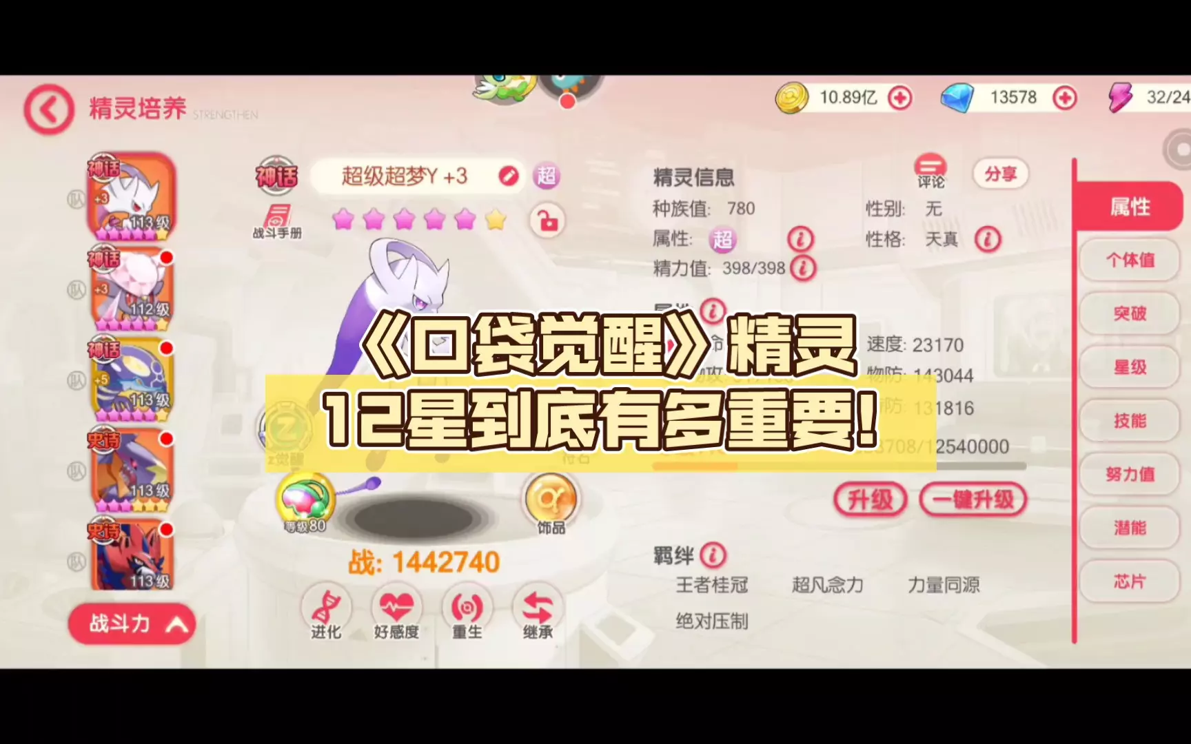 这篇《口袋觉醒》手游情报,解析了超级超梦Y的培养价值,展示了+5、120级的超级超梦Y的属性面板,将从多方面分析它的优缺点,还提到有两个超能系精灵可保护它,资源不足培养则难发挥实力。